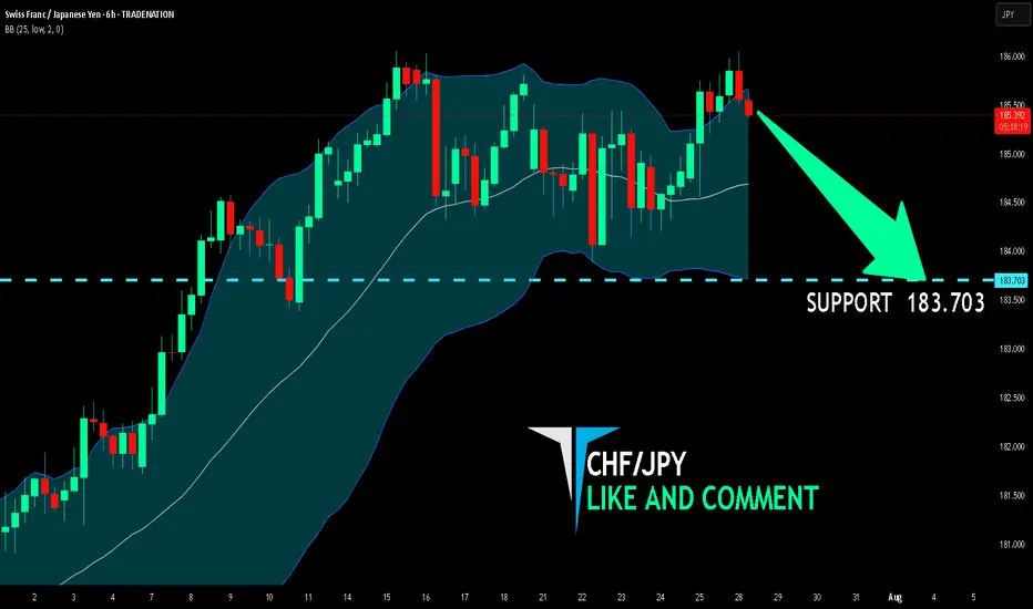 The BB upper band is nearby so CHF-JPY is in the overbought territory. Thus, despite the uptrend on the 1W timeframe I think that we will see a bearish reaction from the resistance line above and a move down towards the target at around 183.703.
