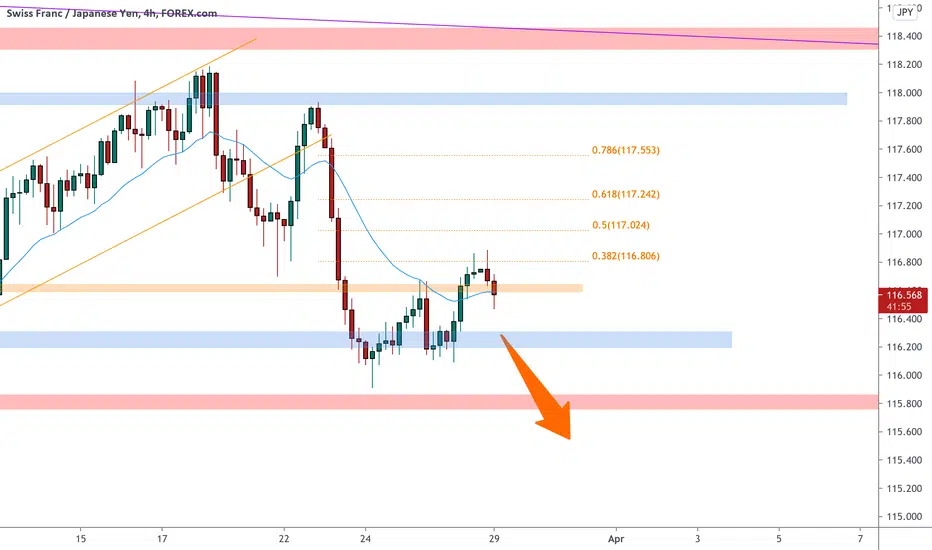 CHFJPY after the sharp rejection by the 118 level moved into a bearish impulse until the 116 area.