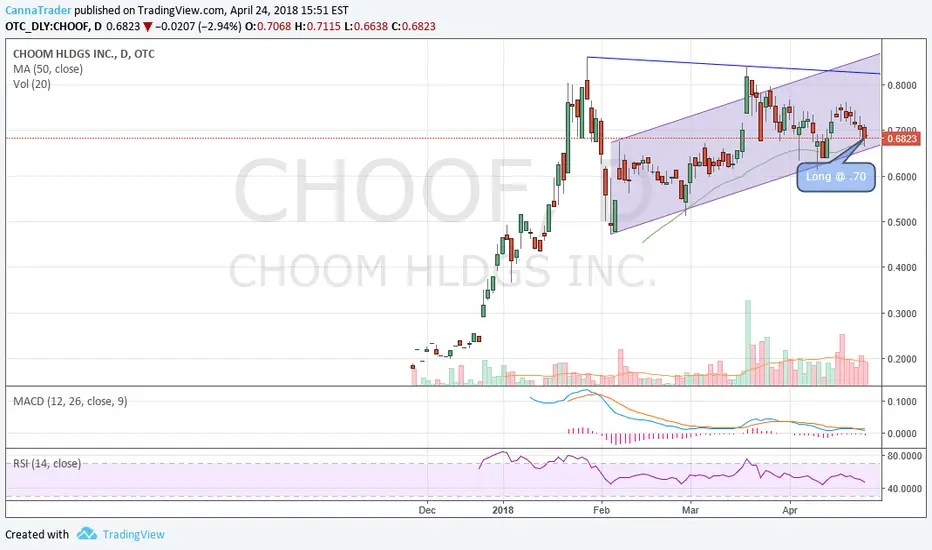 Entering @ .70 at the bottom of an upward sloping channel. I believe we have tree shaking and