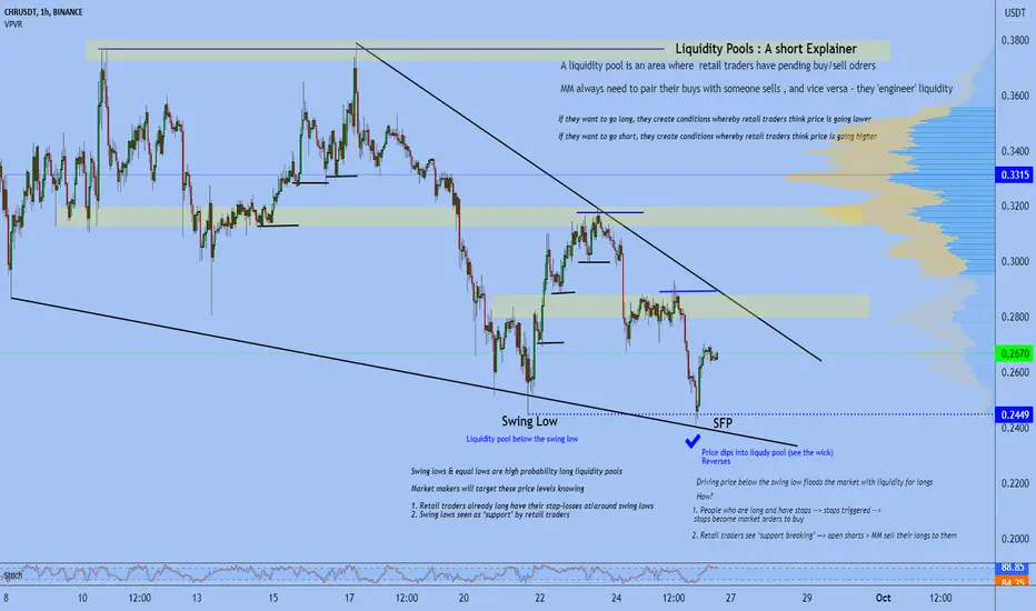 A liquidity pool is an area where retail traders have pending buy/sell odrers