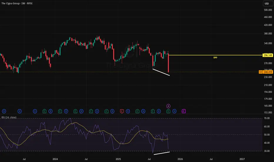 CI may be forming a positive RSI divergence with an unfilled gap at $296.