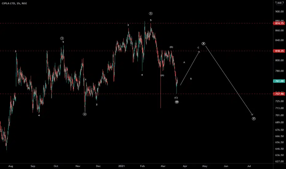 It has completed impulse at last orthodox top and dropped in ABC zigzag down. So the next move would a choppy bounce of (X) wave in complex correction cycle. Wait for A wave bounce to confirm the start of (X) wave for reference. When (X) wave will finish, it start dropping down again in (Y) wave.