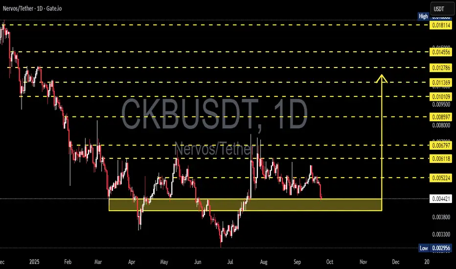 The Nervos (CKB/USDT) pair is now trading right inside a critical demand zone at 0.0038 – 0.0046. This area has repeatedly acted as a last line of defense against deeper declines. At this stage, the market is at a decision point: will this zone trigger another accumulation bounce, or will it finally give way to a stronger bearish continuation?