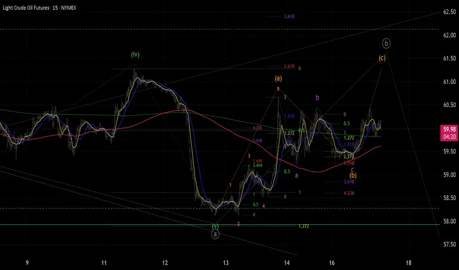 Should see some more range bound movement before WTI makes final W(5) down into the $40's..is my guess. Look for longer term short entries above 62.60 Let's see how it plays out. All of this since March 2022 high of $130 is a supercycle wave A.