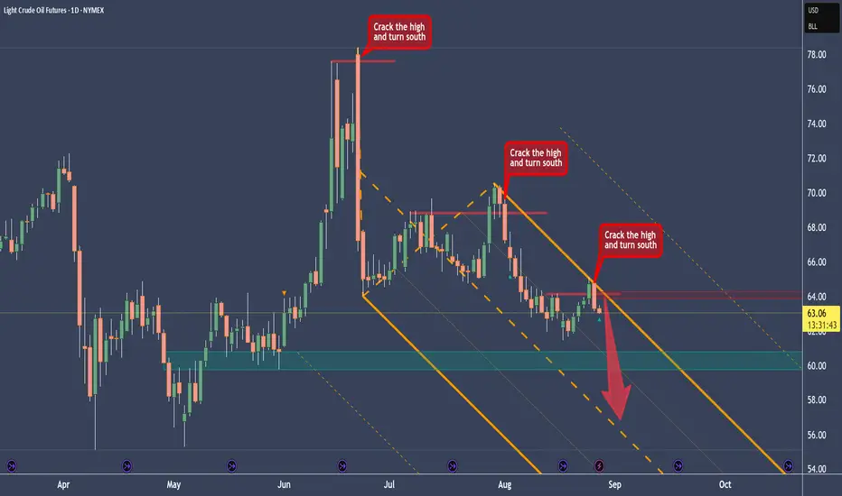 You see that the highs got cracked, and then immediately price turns to the south. And since we are in a downtrend on Crude, we have a legit Short-Trade at hand.