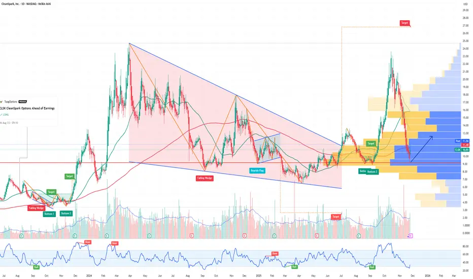 Analyzing the options chain and the chart patterns of CLSK CleanSpark prior to the earnings report this week,