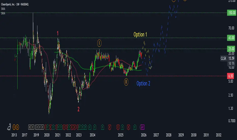 CleanSpark is forming a strong bullish trend. After a possible correction to $8–10, a powerful upward impulse is likely, with targets at $43 and beyond. Potential from current levels: 10x+, but the path includes a consolidation phase.