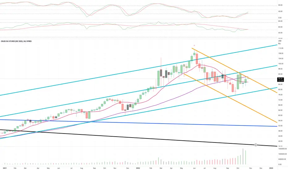 WEEKLY ANALYSIS: The 77.45 region can contain selling through November, above which 97.66 is attainable over that time horizon, able to contain buying through December and the region to settle above for signaling 2-3 months bullish continuation to 111.95, where the broader market can top out through winter activity. Downside, a weekly settlement below 77.45 indicates 68.50 by the end of November or sooner, able to contain broader market selling through the balance of the year.