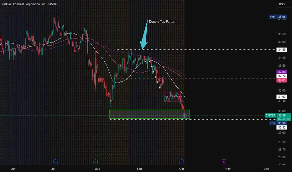 As we enter the 4Q it is looking as though buyers interest may start picking up soon. Double top pattern is completing. Coupled with Comcast's undervalued metrics (low P/E and favorable value scores cited by analysts) and a solid dividend yield, this technical failure to decline can set the stage for a sustained rebound, as renewed buying interest drives the stock out of its recent downtrend.