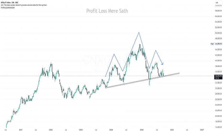 The index is currently displaying a Head & Shoulders pattern on the higher timeframe (weekly). This is a classical bearish reversal structure that often indicates potential downside ahead if the neckline support is broken.