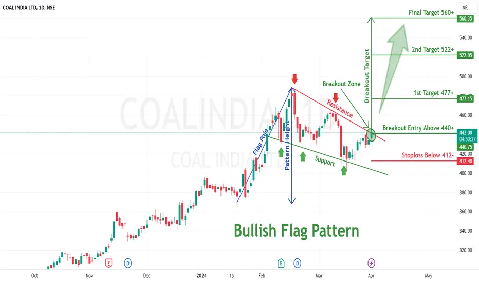 ✅On 1 Day Time Frame Stock Showing Breakout of Bullish Flag Pattern.