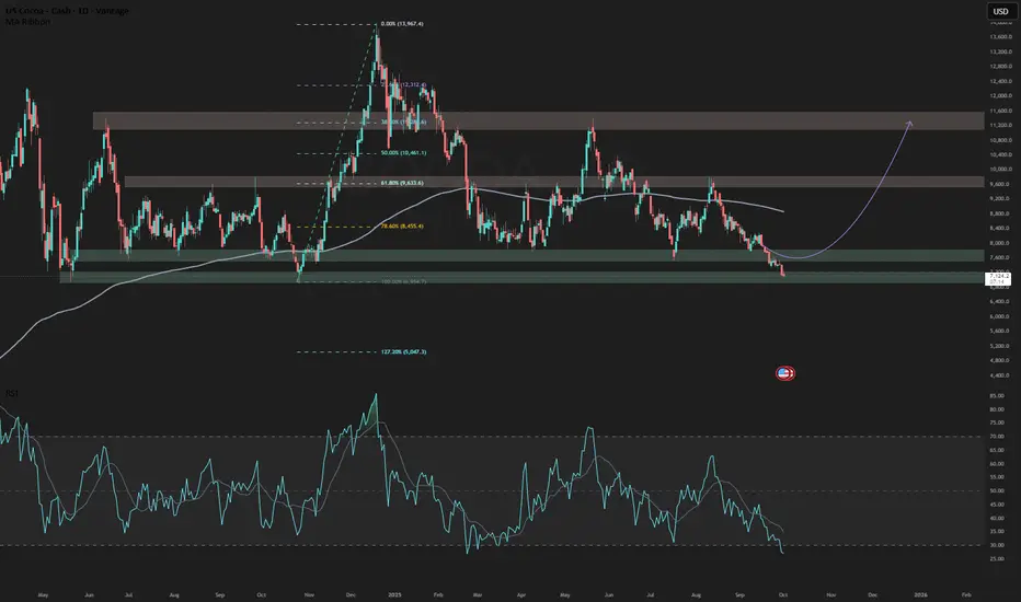 Cocoa has ripped through my first Demand zone and is continuing to the downside but I still believe a huge reversal is going to happen very soon. We can see the price is at a solid Support zone plus the RSI is signaling oversold.