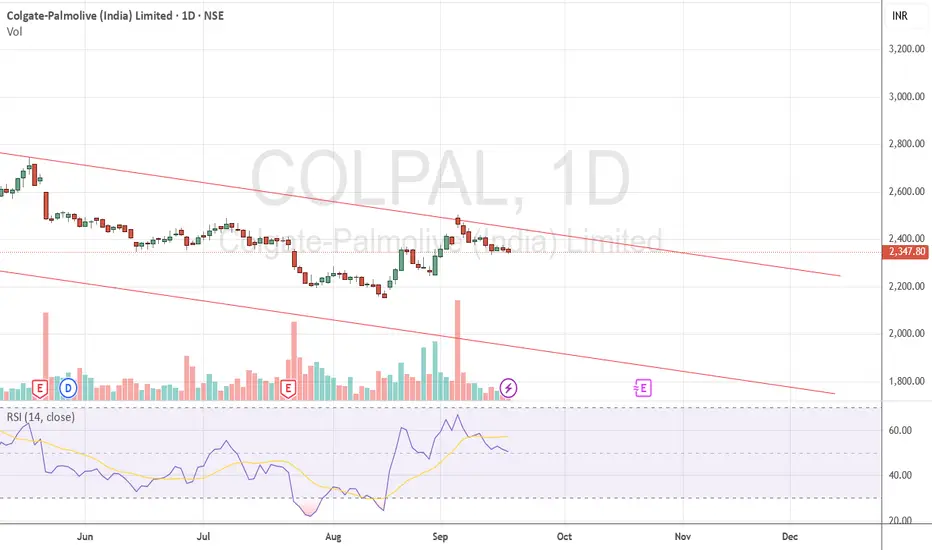 Colgate seems to take resistance at channel top. Sell CMP (2347) with SL of 2415 and target of 2190 and 1950.