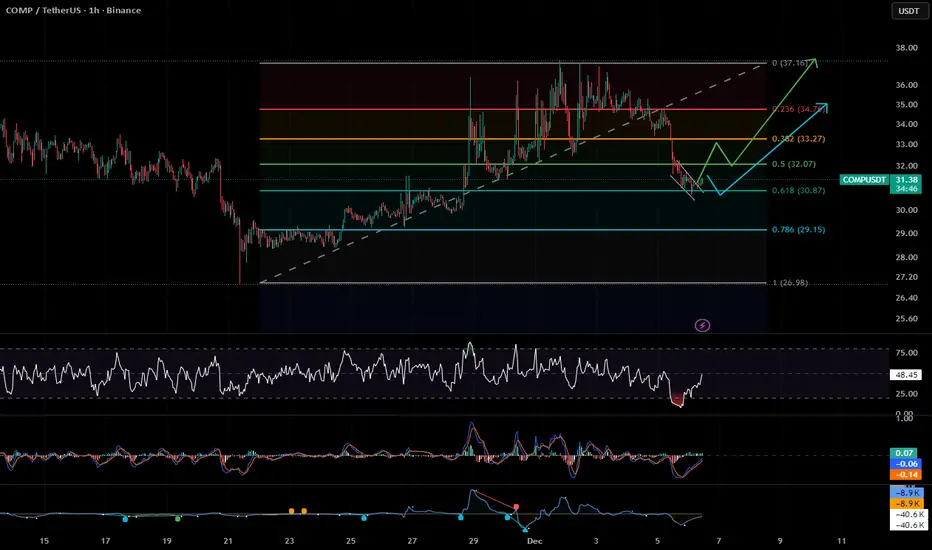 However, a safer approach is to wait for a confirmed breakout and close above the 0.5 Fib zone, followed by an entry with a properly placed stop