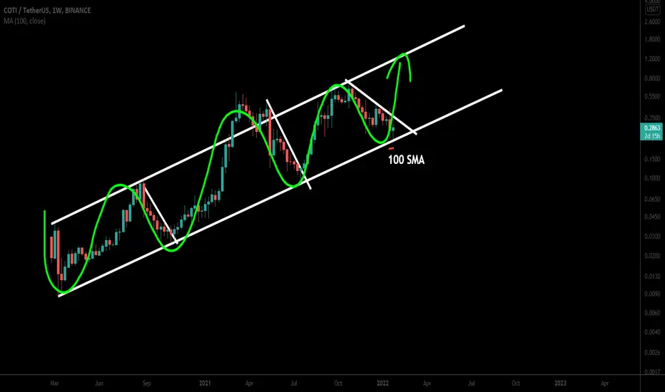 On a weekly time frame, Coti is moving in a long-term up channel.