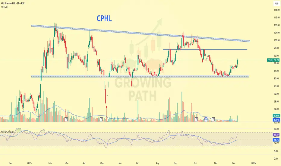 CPHL has shown a solid bullish reaction from the 80–82 multi-tested support zone and is now entering the 90s with strong momentum.