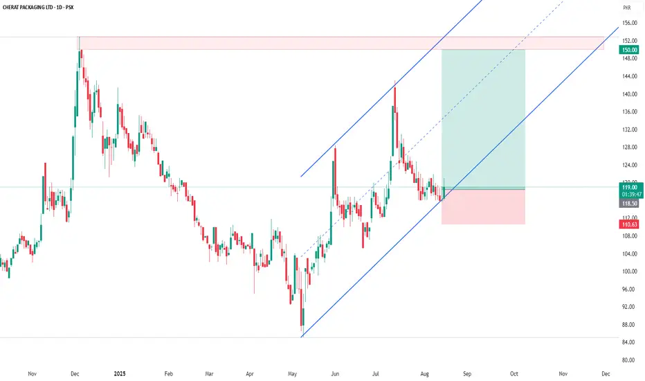 CPPL is trading within a rising channel and has recently bounced from its lower trendline support, indicating potential bullish continuation. The short-term target is set at 124 , mid-term at 136 , and the swing trade setup aims for 150 , aligned with the upper channel resistance. The stop-loss is placed at 110.63 , giving a favorable risk-to-reward ratio of 1 : 4, supported by the uptrend structure and recovery from recent consolidation.
