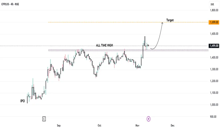 Aditya Infotech, one of the newly listed stocks, has delivered an impressive breakout above its all-time high, showcasing strong bullish momentum and renewed investor interest. After this sharp rally, the stock is now retesting the ₹1470 zone, which earlier acted as a key resistance level and could now flip into a strong support area.