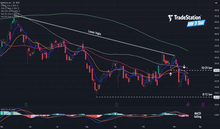 Salesforce has limped despite the broader market climbing. Now some traders may see risk of a bigger slide in the software company.