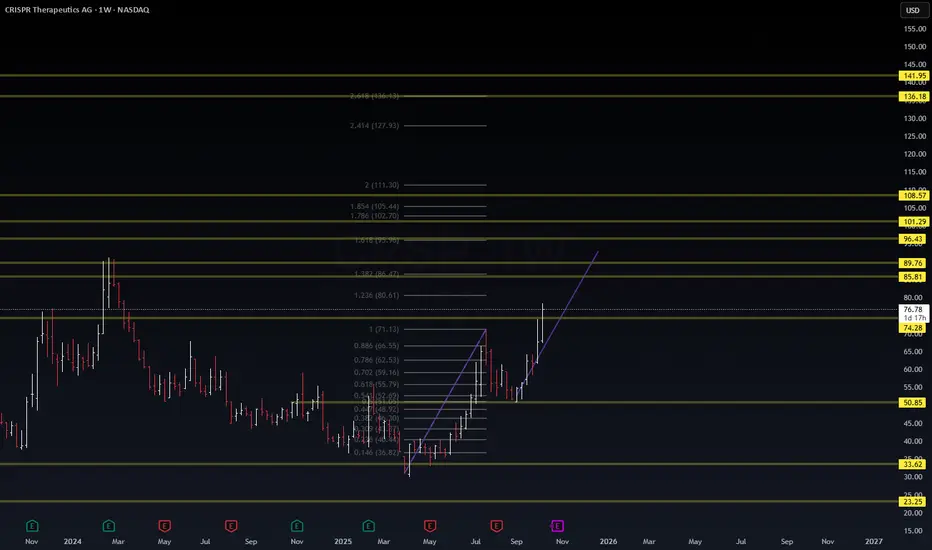 CRSP – Fib Confluence + Institutional Bias Uptrend