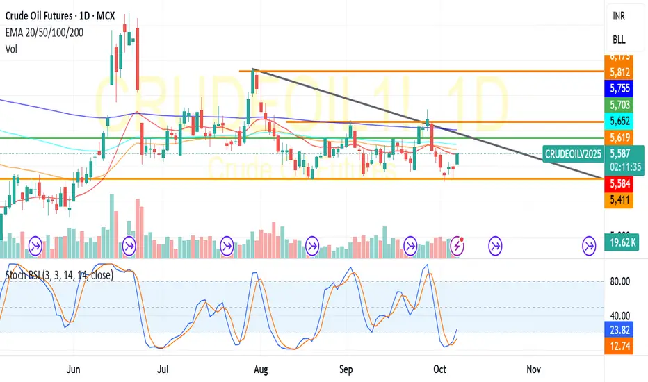 MCX CRUDE: Trading at around 5600 has given Golden EMA Cross over in 30Min chart .