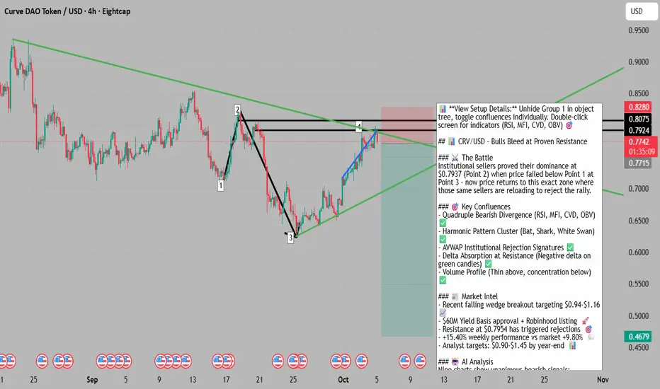 1. **You're Shorting a Breakout**: CRV just broke out of a falling wedge on October 4th - most analysts are calling for $0.94-$1.16 targets, meaning trend momentum favors bulls SHORT-TERM