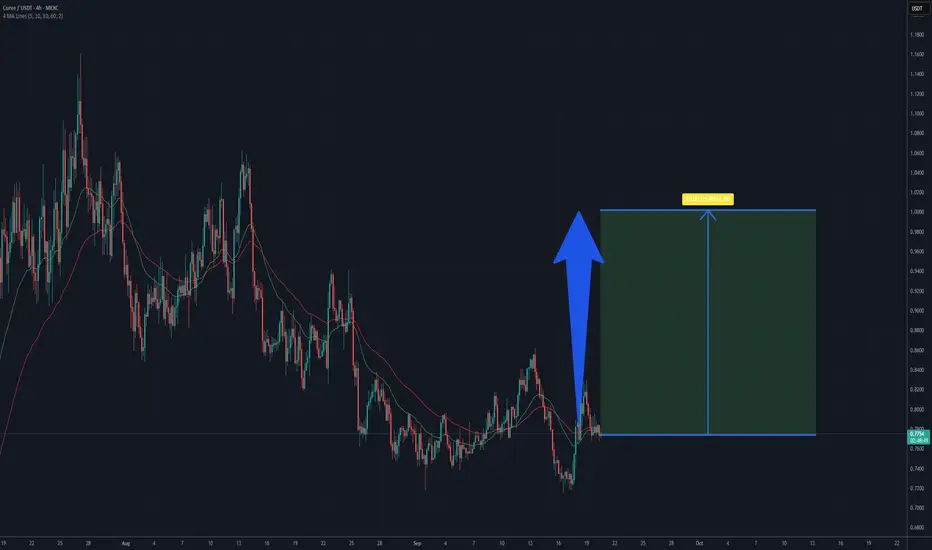 On the 4-hour Curve/USDT chart the market shows a period of sideways consolidation after a recent rebound from the 0.72 USD area. Price is hovering around 0.77 USD, moving in a relatively tight range and testing both short-term moving averages.