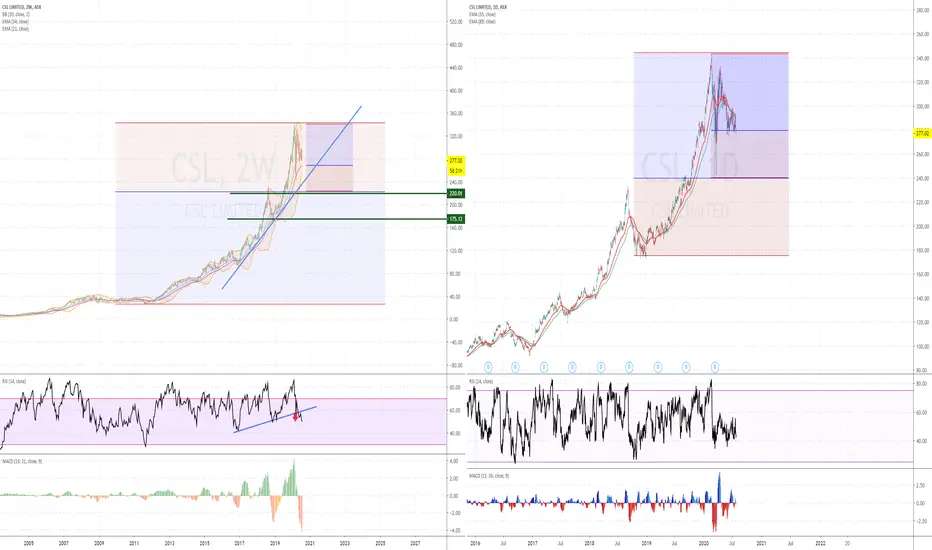 CSL RSI has broken down. price most likely to follow