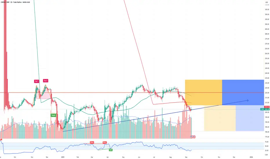 Analyzing the options chain and the chart patterns of CTAS Cintas Corporation prior to the earnings report next week,
