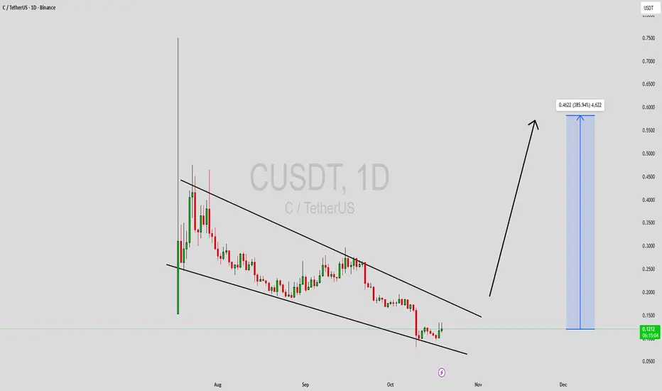 CUSDT is currently developing a falling wedge pattern, a strong bullish indicator that often precedes explosive upward movements. This formation suggests that the recent downtrend may be nearing its end as selling momentum weakens and buyers begin to accumulate positions. The good volume activity adds further strength to this setup, signaling that investor interest is growing rapidly. If the breakout confirms above the wedge resistance, CUSDT could potentially deliver a massive gain of 300% to 350%+, making it one of the most exciting opportunities on the chart right now.