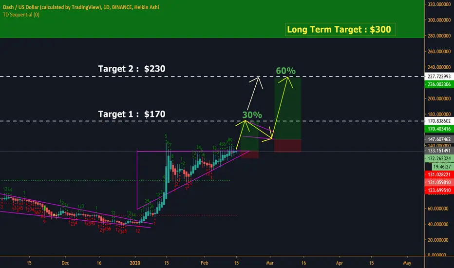 I believe DASH is making its way towards the $300 range forming a massive 2nd touch on weekly/monthly HTF scale. This could be seen in 2 big moves. Part 1 is here.