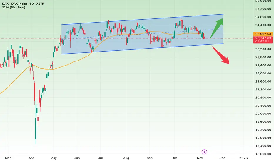 From a long-term perspective, as long as the DAX remains above 23,000, the broader trend stays bullish, with next major upside targets around 25,000–25,500.