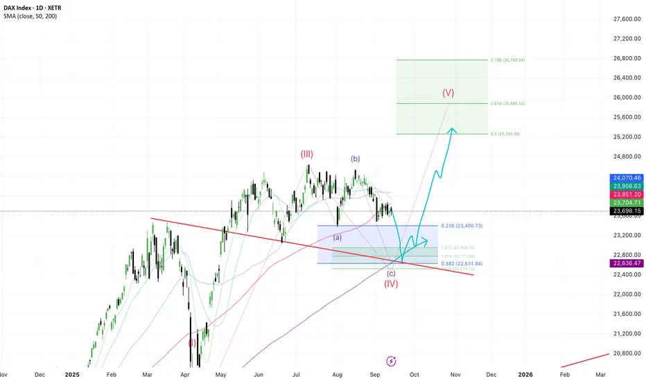 The DAX should get support between the lvls of 22900-22600 points, because of the 200 day line and some fib zones...