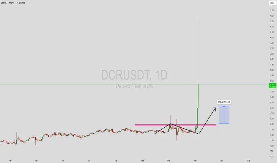 DCRUSDT is currently showing a strong bullish momentum pattern, signaling a potential continuation of its upward trajectory. The market structure suggests that buyers are gaining control, and recent price action reflects growing investor confidence. With solid trading volume supporting this movement, DCRUSDT is positioned for a possible breakout that could deliver gains of 30% to 40% in the short to medium term. This kind of setup often attracts both technical and fundamental traders looking to capitalize on early trend shifts.