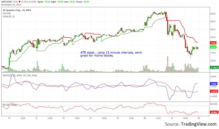 Using a 15 minute chart for momo stocks, ATR stops work really well.