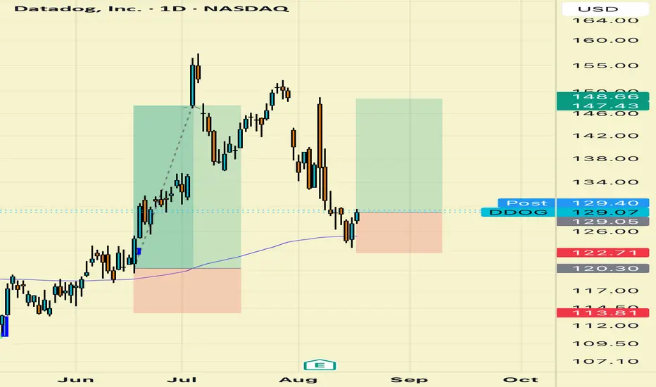 Look to the left on my chart. Thats the last time I played DDOG and it was an options play. Extremely profitable and no drawdown. Picture perfect play of a 200ema break out and retest on the daily time frame. By the time I closed my last contract I think I was between 300-400% on them, maybe more I can't remember....