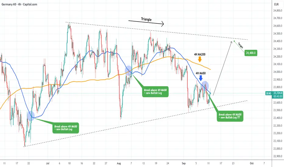 This time the price finds itself at the bottom (Higher Lows trend-line) of a 3-month Triangle. Every Bullish Leg of this pattern was confirmed after the price closed a candle above its 4H MA50 (blue trend-line), something the index did 2 days ago.