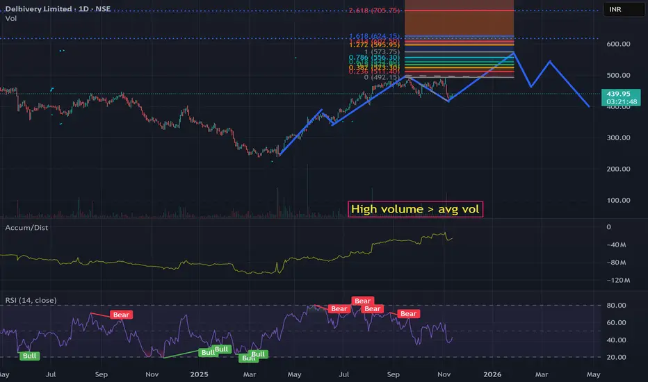 Delhivery for the target 575-600 and then correction can take it to 400-430 range.