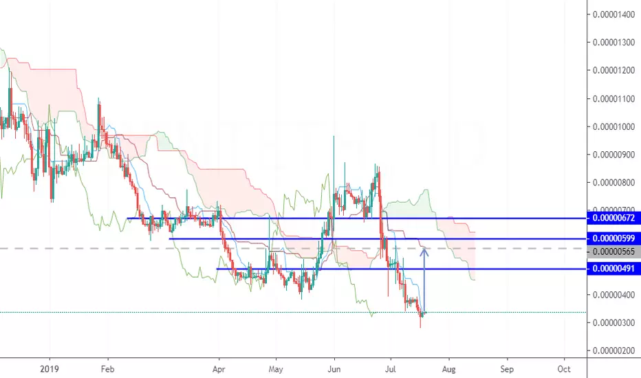 DENT 1D there is ichimoko cloud andicator best target is 0.00000565