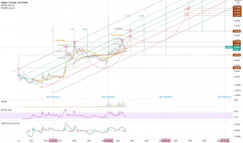 In this Digibyte study requested by a subscriber, I look at the longer term market structure of this Proof of Work crypto currency through the lens of the BTC halving cycle, assuming a continued correlation to that cycle. There are some apparent target for the peak of the current market cycle in both time and value, and future projections for the subsequent correction and future rally.