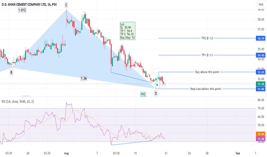 To further enhance the probability of the trade it is suggested that a position may be open at 53.