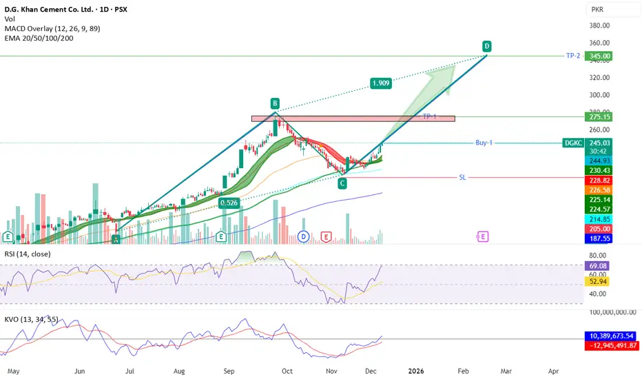 On daily TF, price has just crossed EMA 20 level indicating a bull run. MACD overlay also suggesting start of buying momentum. RSI indicates that buyers are in control means prices are likely to continue the trend. KVO also suggesting that volumes are coming in this SCRIPT as KVO trigger is above Zero now.