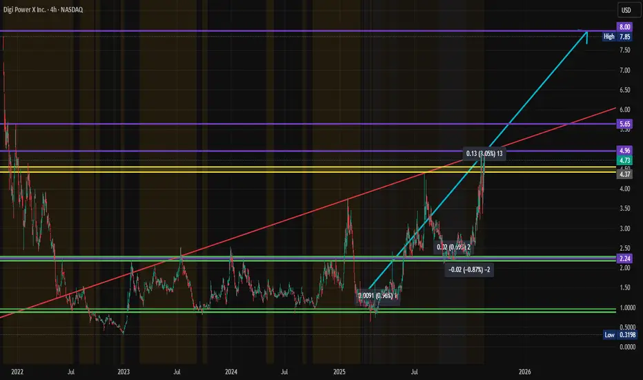 DGXX has been churning through this $4.42-$4.56 Level of Resistance, continuing on to push through the Higher $4.96 Levels. We're currently on pace to hit $5.65 and on to the $8.00 PT.