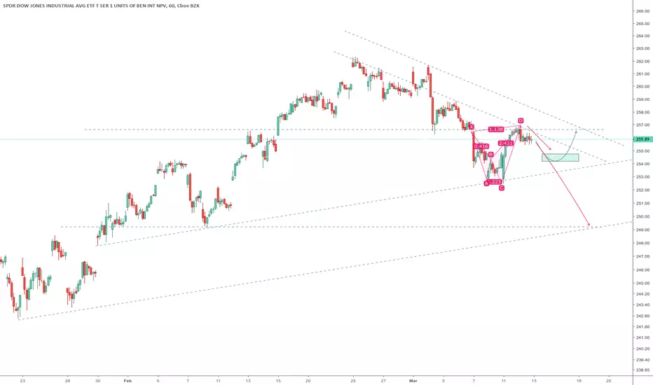 Bearish shark implies a 0.5-0.618 retrace to the green box... where it'll paint a right shoulder for either a small inv H&S or the larger H&S. The green arrow seems more plausible since the indices just seem to accumulate with abandon on Fridays.
