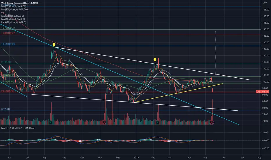 DIS #DIS Ouch! ER destroyed the setup. I think its an over reaction on a company pivoting for streaming profitability. $92-$90 is an important support area for the bulls. If that breaks, downside risk is $80. If the $92-$90 support hold, it can get back to $100 in a short time.