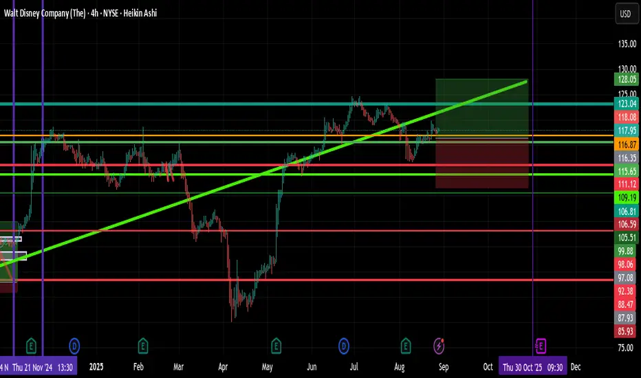 Expecting Disney may advance into the 145–150 USD region. This view is based on current technical signals, but the market is uncertain and no outcome can be guaranteed. Screaming for 128 b4 EOQ and EOY Touching $140-145USD.
