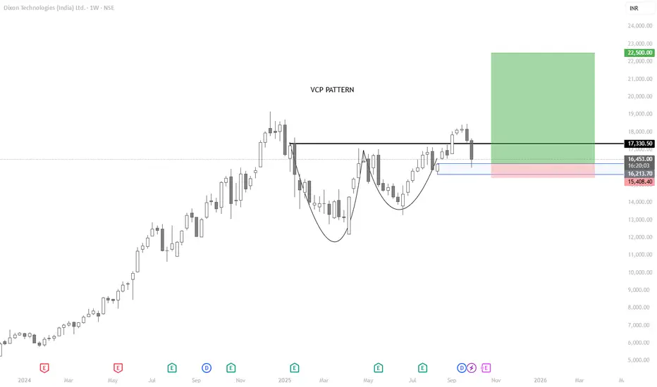 DIXON - a perfect vcp pattern with good RR. Expecting TGT 22500. SL 15500 WCB