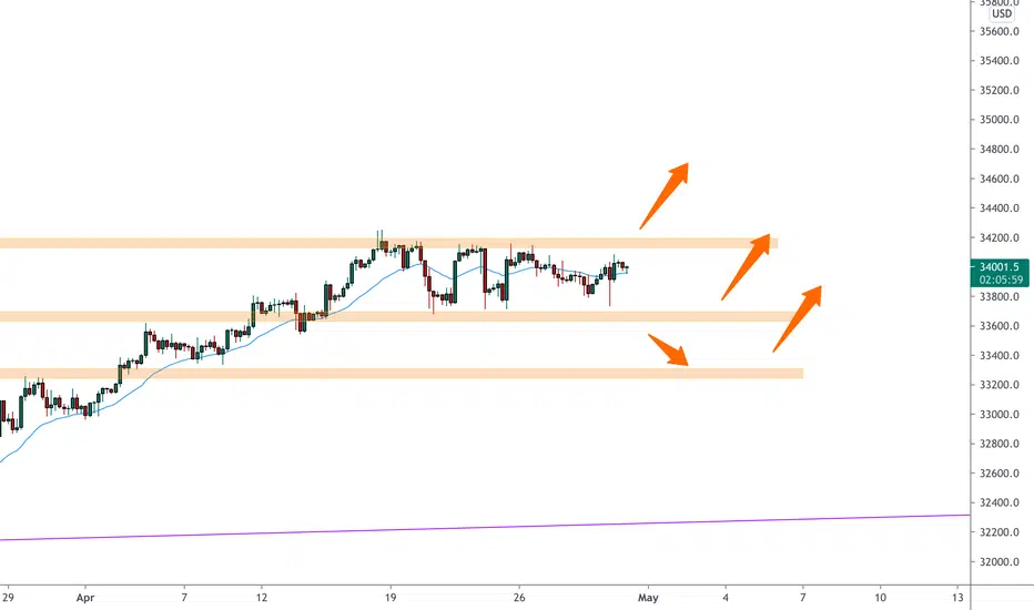 DOW on the 4h chart is moving inside 2 structures, after that last retracement the market tested a previous support.