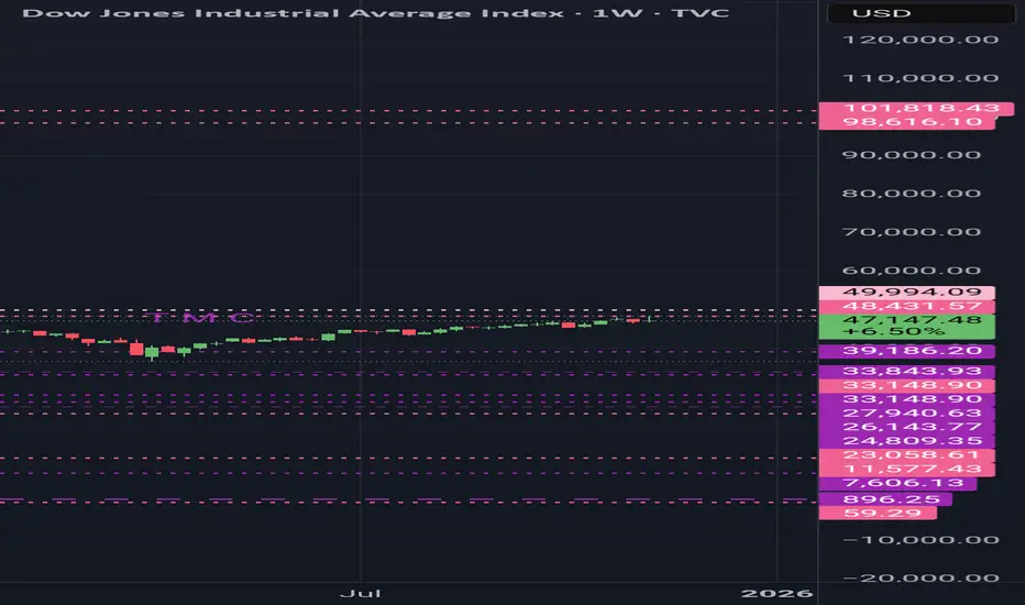 DJI, in its yearly first complete grand pattern, faces strong resistance at $48,431, the previous high, and $49,994, signaling a potential reversal. If not, corrections are at $33,843, $33,148, $27,940, $26,143, and $24,144