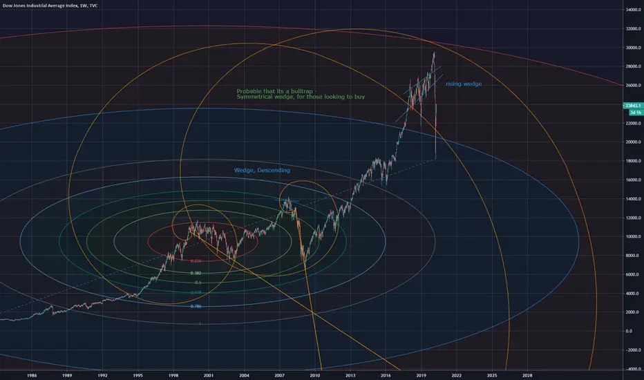 Interesting Dow fib spiral showing three bottom points, will the symmetrical wedge be a bulltrap? we will see.